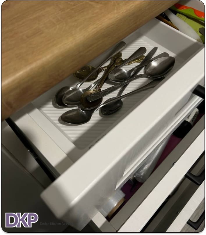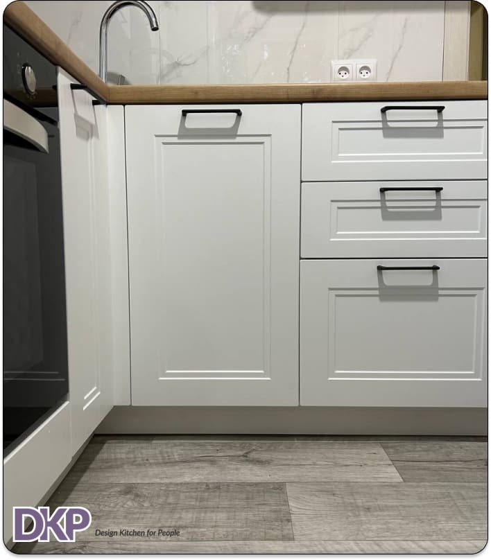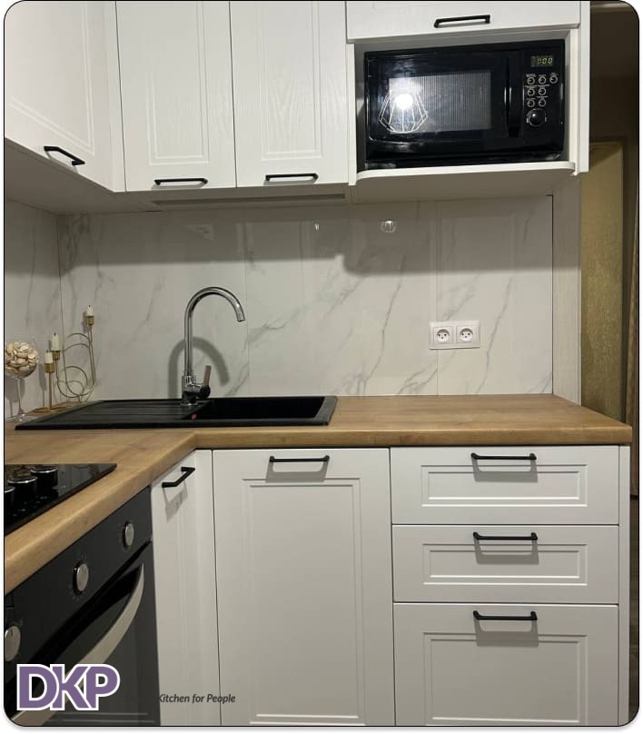 В стоимость входит: вкладыш для приборов, сушка для посуды, ручки мебельные торцевые, петли Blum;
